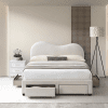 Bring elegance and practicality together with the Eluna 4 Drawer Storage Bed Frame, designed to elevate your bedroom while keeping it clutter-free. Its softly curved cloud-inspired headboard creates a soothing focal point, while the four cleverly placed drawers provide discreet yet generous storage. Upholstered in soft-touch fabric in Grey or Ivory, Eluna offers timeless sophistication for both modern and classic interiors.