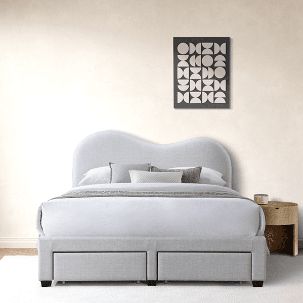 • Cloud-shaped upholstered headboard for a soft, contemporary look