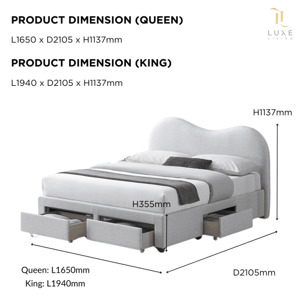 Eluna 4 Drawer Storage Bed Frame – Queen & King