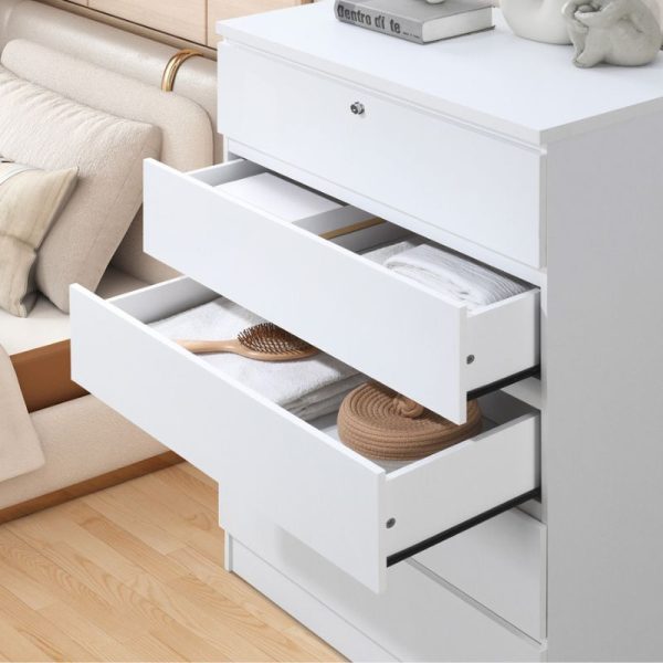 The Joe 5-Layer Chest of Drawers combines simplicity, practicality, and security in one elegant storage solution. With five spacious drawers and a lockable top drawer (or option to install the lock on any layer), it’s ideal for keeping both personal items and household essentials neatly organssed. Its crisp white finish brings a sense of lightness and sophistication to modern bedrooms, dressing rooms, or offices.