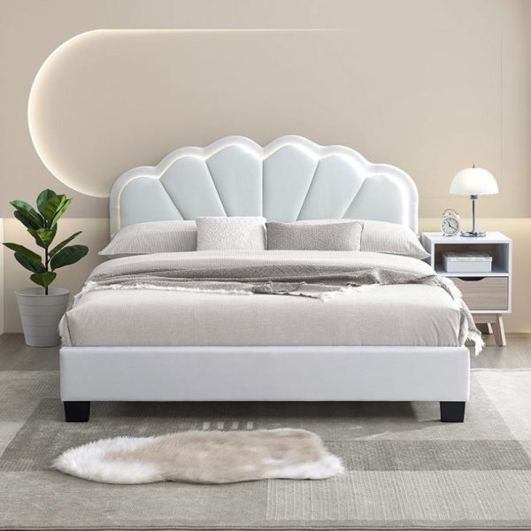 • Elegant scallop-shaped velvet headboard that enhances bedroom aesthetics