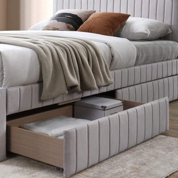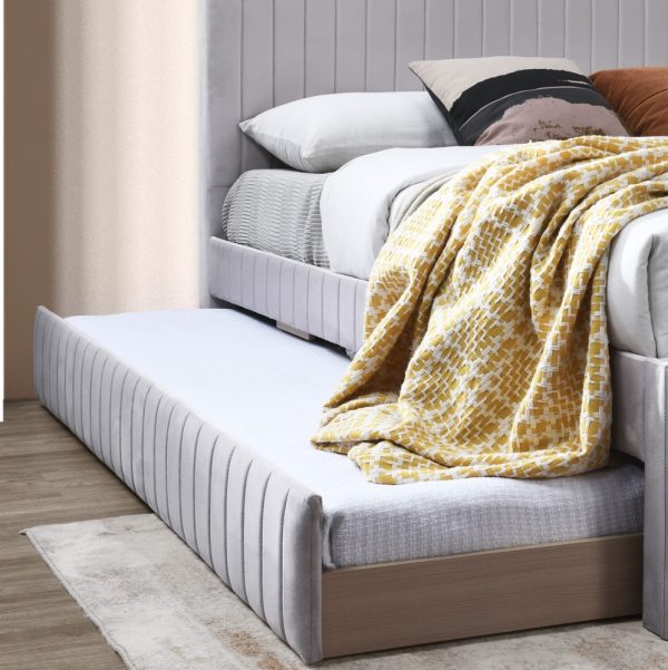 Elevate your bedroom with the Zoey Bed Frame – a modern blend of style, function, and hospitality. Designed for compact living or guest-friendly homes, Zoey features two smooth-glide storage drawers on one side and a convenient pull-out single bed on the other, all wrapped in soft, luxurious velvet upholstery. Available in elegant Grey and Ivory, it is the perfect statement piece for practical elegance.